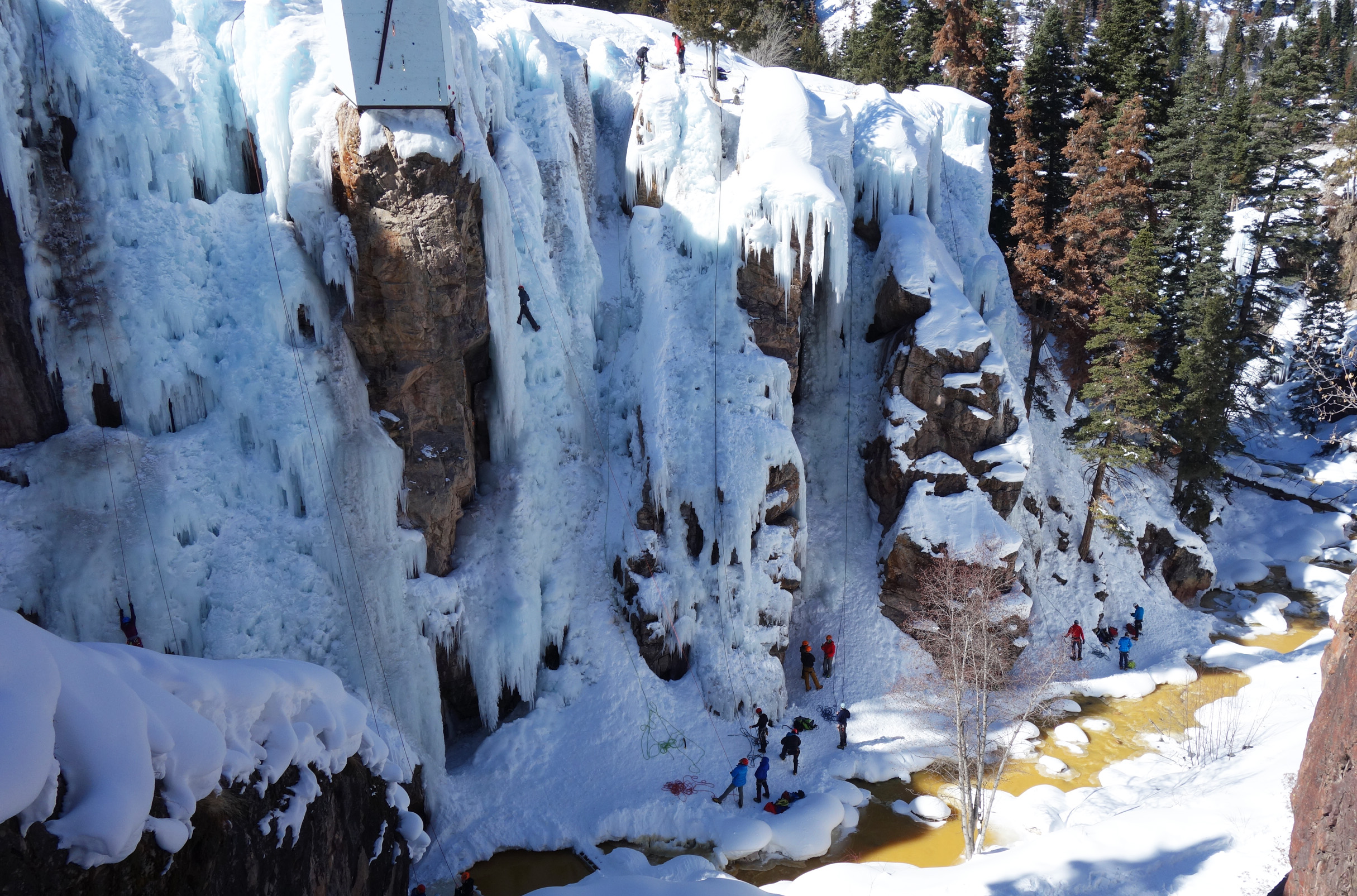 First time at Ouray Ice Park in Ouray, Co. Pretty fun! Just a big Ice Crag. So many routes. A great place to go ice climbing with a large group. Went with Chris, Rob, Mark, Steve, Melissa, and Amy.