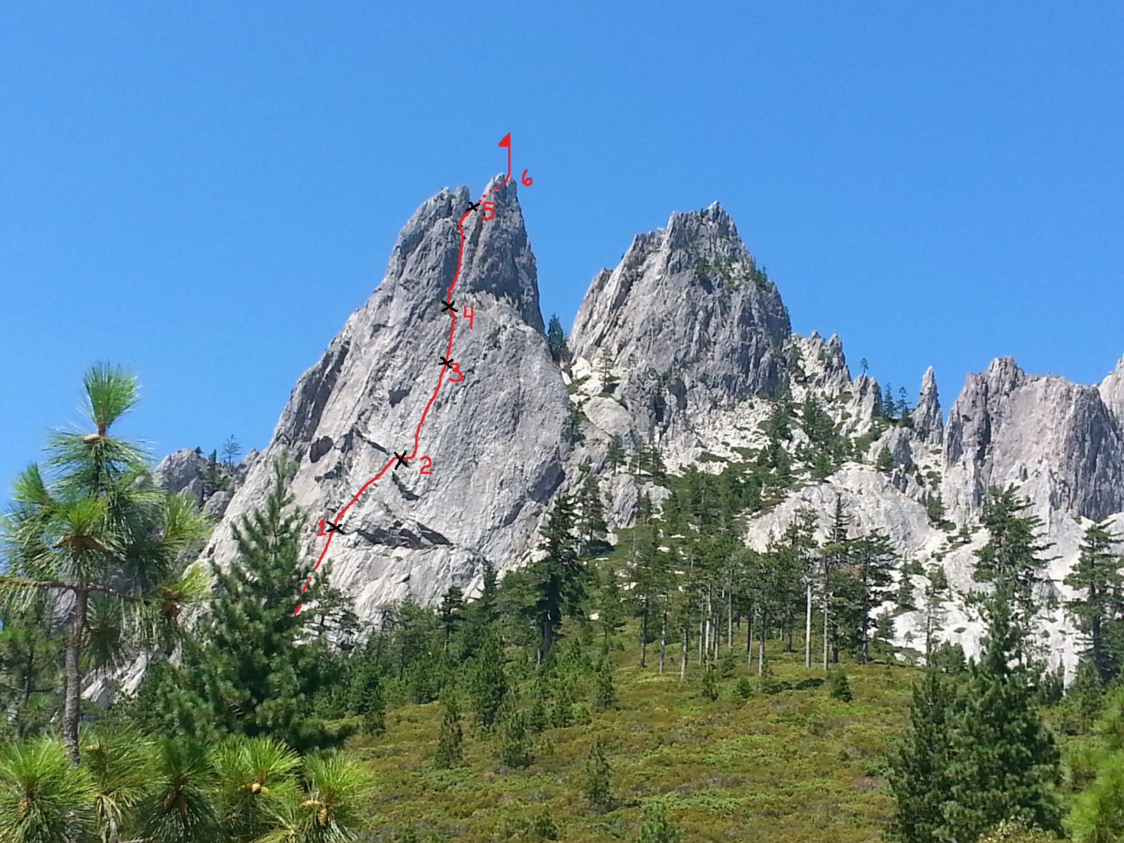 Left work at 4:00pm Friday, and pulled into Dunsmiur at about 11:30pm. Parked the truck the next morning at the Crags trailhead at about 6:15am. Started climbing at 8:20am, and hit the summit at 11:40am…back at the truck at 1:45pm. Quality fun climb. I took pitches 1 and 5…